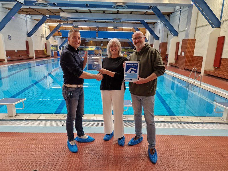 Het keurmerk Veilig & Schoon is hét keurmerk in de zwembadbranche. Hiermee laten we zien dat een accommodatie, de naam zegt het al, veilig en schoon is. Op basis van thema’s als Gasten, Zwembadvoorzieningen en Gebouw & Installaties laat een accommodatie zien dat ze aan de scherpste eisen voldoet. Sportfondsen Dukenburg is sinds juni 2024 weer onderdeel van Sportfondsen Nijmegen. Een voorwaarde van de gemeente voor de exploitatie van dit zwembad was het behalen en behouden van dit keurmerk. In april van dit jaar hoorden we al dat we een positief oordeel kregen tijdens de audit. Met de feestelijke overhandiging van het muurschild en het bijbehorende certificaat is het officieel: Sportfondsen Dukenburg voldoet aan de maat, net als onze andere accommodaties Sportfondsen Nijmegen-West, Sportfondsen Erica Terpstrabad en Sportfondsen Goffertbad uiteraard.